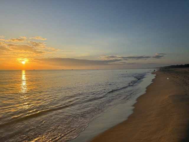 静かな砂浜で、人の気配が少ない