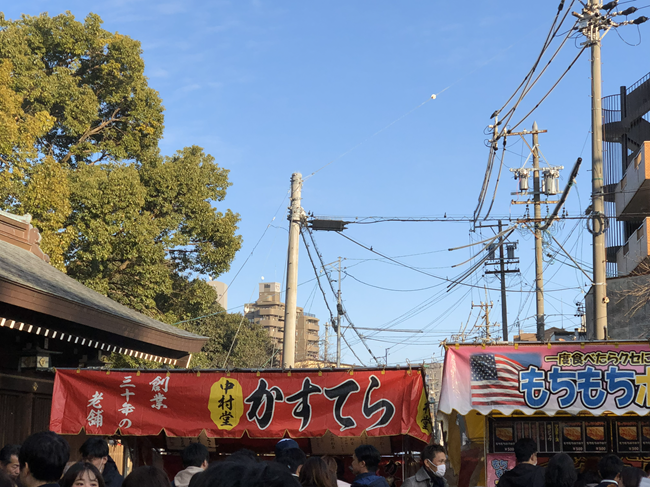 「屋台に並ぶ+参拝の列」